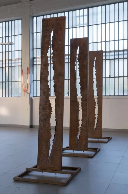 Il mio lavoro è una ricerca sul limite e sull’equilibrio: tra struttura e vibrazione, peso e levità, permanenza e trasformazione. Attraverso metalli lavorati a mano, ossidi, pigmenti e combustioni, cerco di rendere visibile l’energia che attraversa la materia, di dare forma all’invisibile. La scultura diventa così un dispositivo percettivo, un punto di attrazione, ma anche un varco.