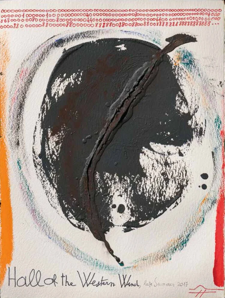 Tutto parte dagli sketch delle sue sculture — disegni-mente, mappe interiori — che nel tempo evolvono in vere e proprie opere su carta, dense, vibranti, sospese tra forma e intuizione. Le chine giapponesi, lasciate invecchiare per addensarne il tratto, e le carte antiche a base cotone, selezionate con cura tra i mercati dei Paesi Bassi, diventano parte integrante dell’opera, memoria e supporto, pelle e struttura.
